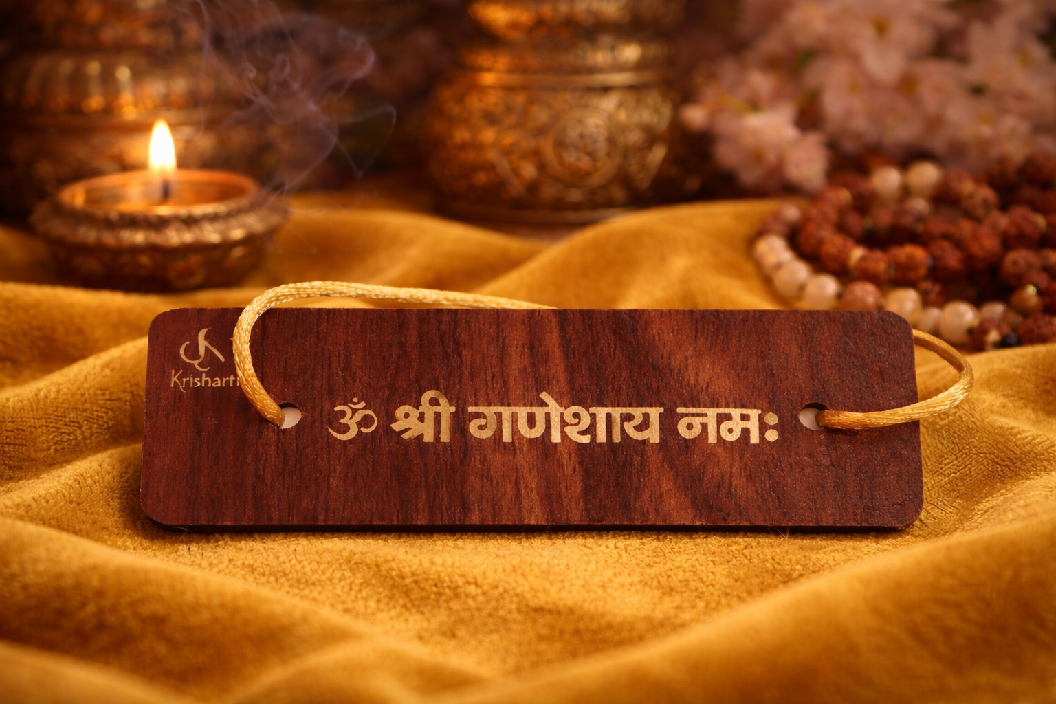 This exquisitely designed Krisharth wooden booklet is dedicated to Lord Ganesha. Made from premium wood, this booklet provides a calming and spiritual experience with the mantra ‘Om Shri Ganeshaya Namaha’. It contains Shri Ganesh Chalisa, Stuti and Aarti, making it perfect for daily puja and rituals.